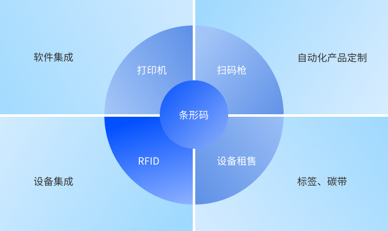 上海鋯瑞技術有限公司業(yè)務分為9大模塊,條形碼,RFID,打印機,掃描槍,軟件集成,設備集成,自動化產(chǎn)品定制,標簽碳帶和設備租售。 以條形碼和RFID為起點,以打印機,掃描槍和標簽碳帶為基礎,逐步技術延伸,層層遞進,實現(xiàn)識別軟件系統(tǒng)開發(fā),自動化檢驗設備集成,自動化產(chǎn)品定制等自主創(chuàng)作研發(fā)能力,滿足各類企業(yè)物聯(lián)網(wǎng)應用需求。